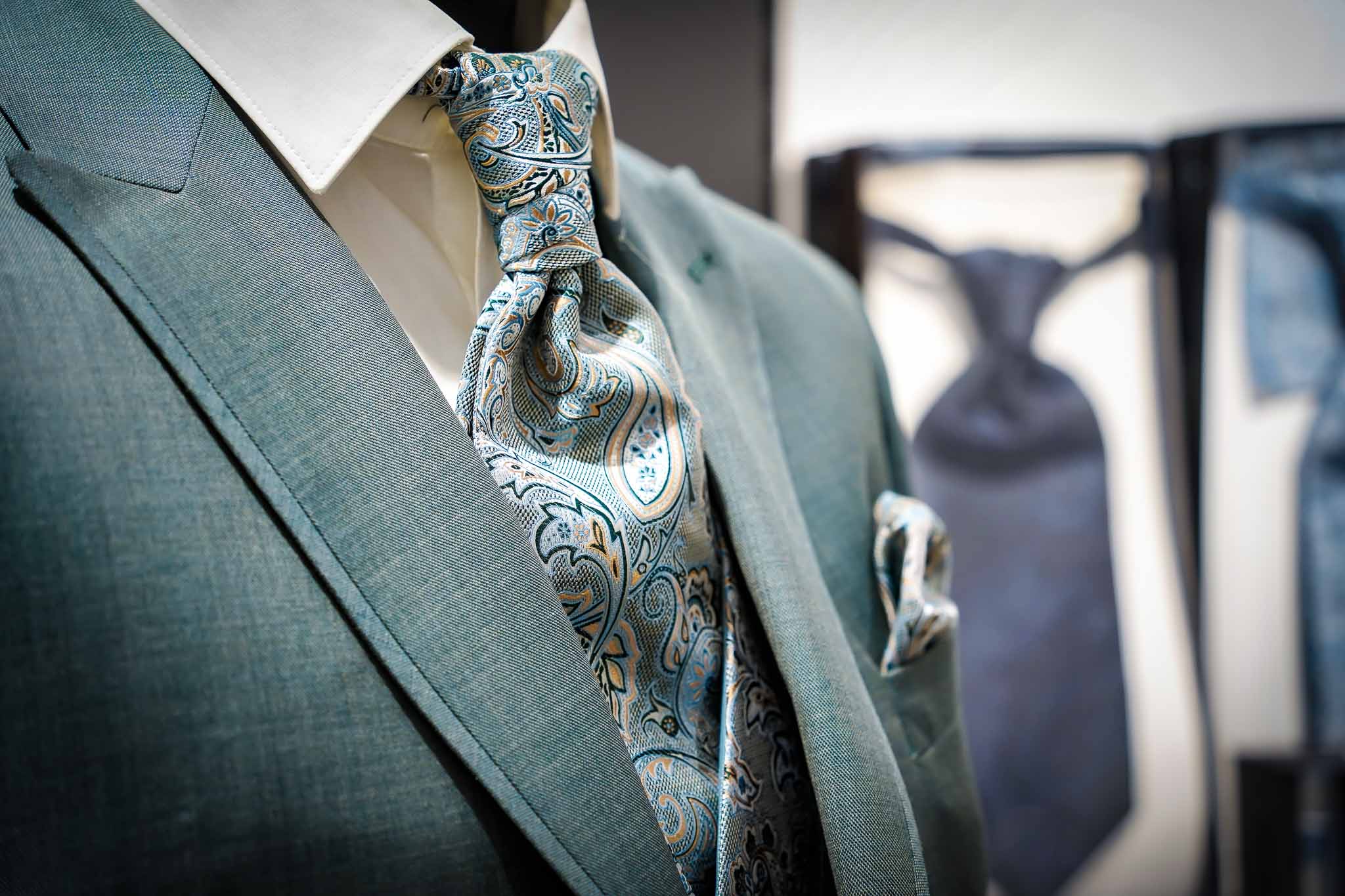 Ob klassisches weiß, farbig oder gemustert – das Einstecktuch setzt persönliche Akzente. Verschiedene Falttechniken eröffnen Spielraum für Stil und Individualität.